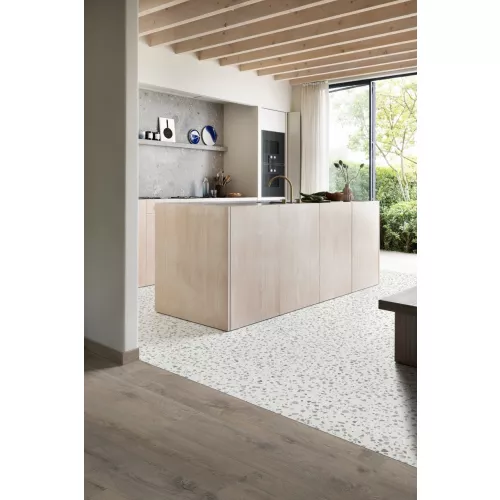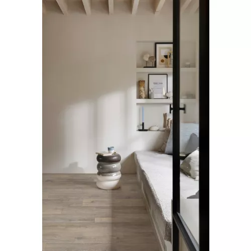 A naturally weathered look that blends the aesthetic lines of soft saw cuts with heavy knots and cracks. It’s the perfect basis for an interior that feels exclusive and authentic.