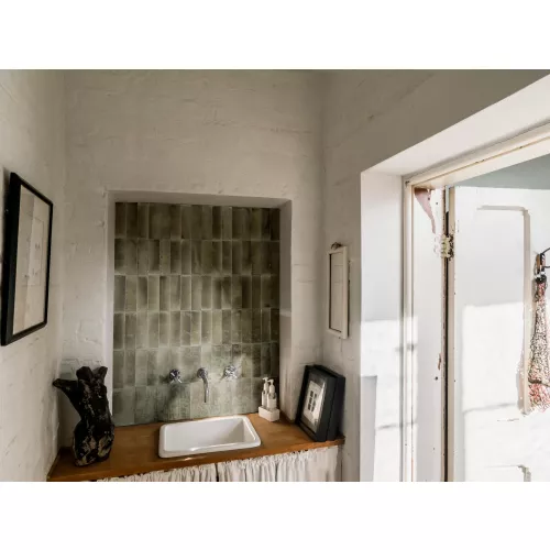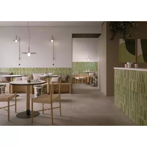 Super-glossy concave and convex surfaces combined with three-dimensional structures alternate on the walls, bringing them to life. A palette of five colours, Bianco, Beige, Turchese, Giada and Grigio, available in three different sizes – 10x10 cm, 5x15 cm and 7.5x20 cm –, modular and with straight edges, for new installation options.