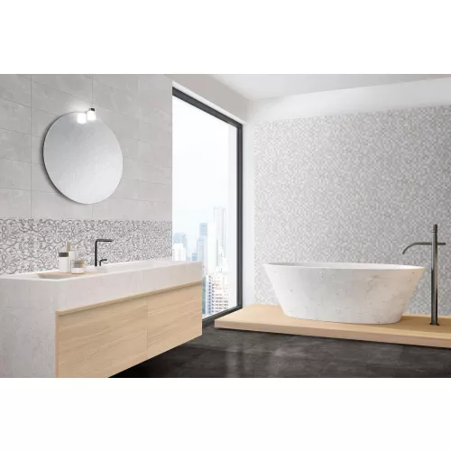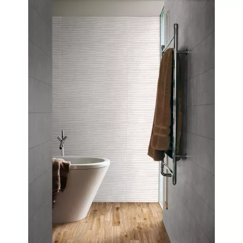 Creek reinterprets stone in the form of minimalist limestone, a rock of ancient origins with subtle veining and barely perceptible patterning, for fresh, luminous interiors and decorations in romantic style. 5 natural colours supported by mosaics in matching shades, decorations with continuous motifs and outdoor structured surfaces, in an informal style focused on unbeatable convenience and immaculate looks, also in combination with the matching Creek wall covering,