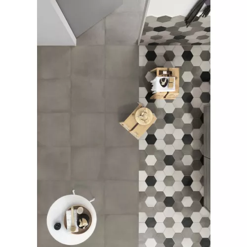 The tiles in the Rewind collection provide a contemporary reinterpretation of timeless materials. The collection is available in six sophisticated colours and a wide assortment of sizes. The inclusion in the range of a hexagonal tile size, for use as a decorative piece or an extension of the floor covering products, allows the creation of design schemes with a unique personality. Rewind is suitable for use as a wall or floor covering in residential and commercial projects and in combination with the Woodplace wood-look stoneware.