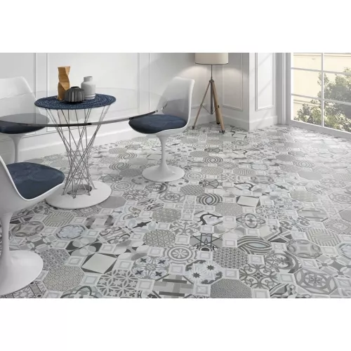 Geotiles presents the Flow model, a 60x60 non-rectified Porcelain Stoneware model that simulates the hydraulic mosaic manufactured in the Levante area of Manises. A collection that is inspired by the blue manise colors that later recreated Portuguese ceramics.