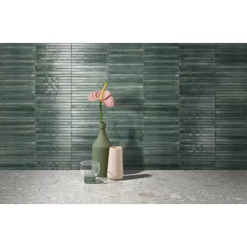 The range of the Look collection, made unique by its tiny flaws and subtle variations in color that underline its material, is now extended with three new shades and a decor with a relief structure applied to selected colored plain tiles. Memory and tradition are embodied in exquisite small surfaces reinterpreted in contemporary taste. Hand-craftsmanship and bright glazes create interplays of light on surfaces that add vibrant warmth and personality to interiors.