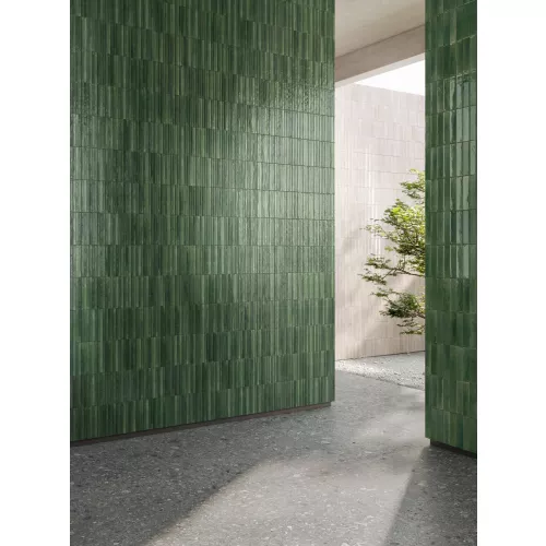 The range of the Look collection, made unique by its tiny flaws and subtle variations in color that underline its material, is now extended with three new shades and a decor with a relief structure applied to selected colored plain tiles. Memory and tradition are embodied in exquisite small surfaces reinterpreted in contemporary taste. Hand-craftsmanship and bright glazes create interplays of light on surfaces that add vibrant warmth and personality to interiors.
