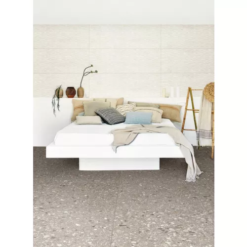 Chromatic expressiveness and tactile richness. Realstone_Navigli is inspired by the surface created by mixing fragments of Ceppo di Gré and cement. The two shades, Grigio and Naturale, reflect the careful selection of the original materials, graphic richness and the most intense chromatic aspects.