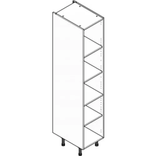 Tower cabinets are 1970mm H plus 150 legs x 570mm D. Hinge plate positions are pre-drilled for euro screws. Includes tool-less adjustable legs (150mm H). Shelf packs included.