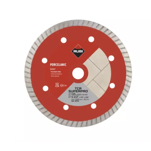 The RUBI TCR‑180 SUPERPRO (31975) Turbo diamond blade is engineered for dry cutting high‑quality porcelain stoneware, especially BIa‑rated tiles. Designed for professional ceramic tile installers, the TCR SUPERPRO delivers a fine, precise cut with excellent finish quality—making it a top choice for premium porcelain.