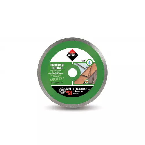 The RUBI CEV‑180 SUPERPRO (30945) continuous rim diamond blade is designed for high‑quality cutting of ceramic tiles, offering superior finish, precision and performance across a wide range of ceramic materials. As part of the SUPERPRO range, it is engineered for demanding professional use where clean, accurate cuts are essential.