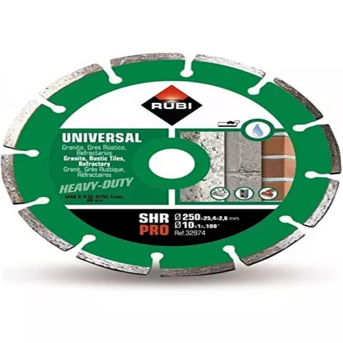 The RUBI SHR‑300 PRO (32972) is a high‑performance segmented diamond blade designed for fast, efficient dry cutting of a wide range of building materials. Engineered for use with angle grinders and table saws, the SHR series is ideal for professionals who need a reliable, versatile blade capable of handling everyday construction tasks without constant blade changes.